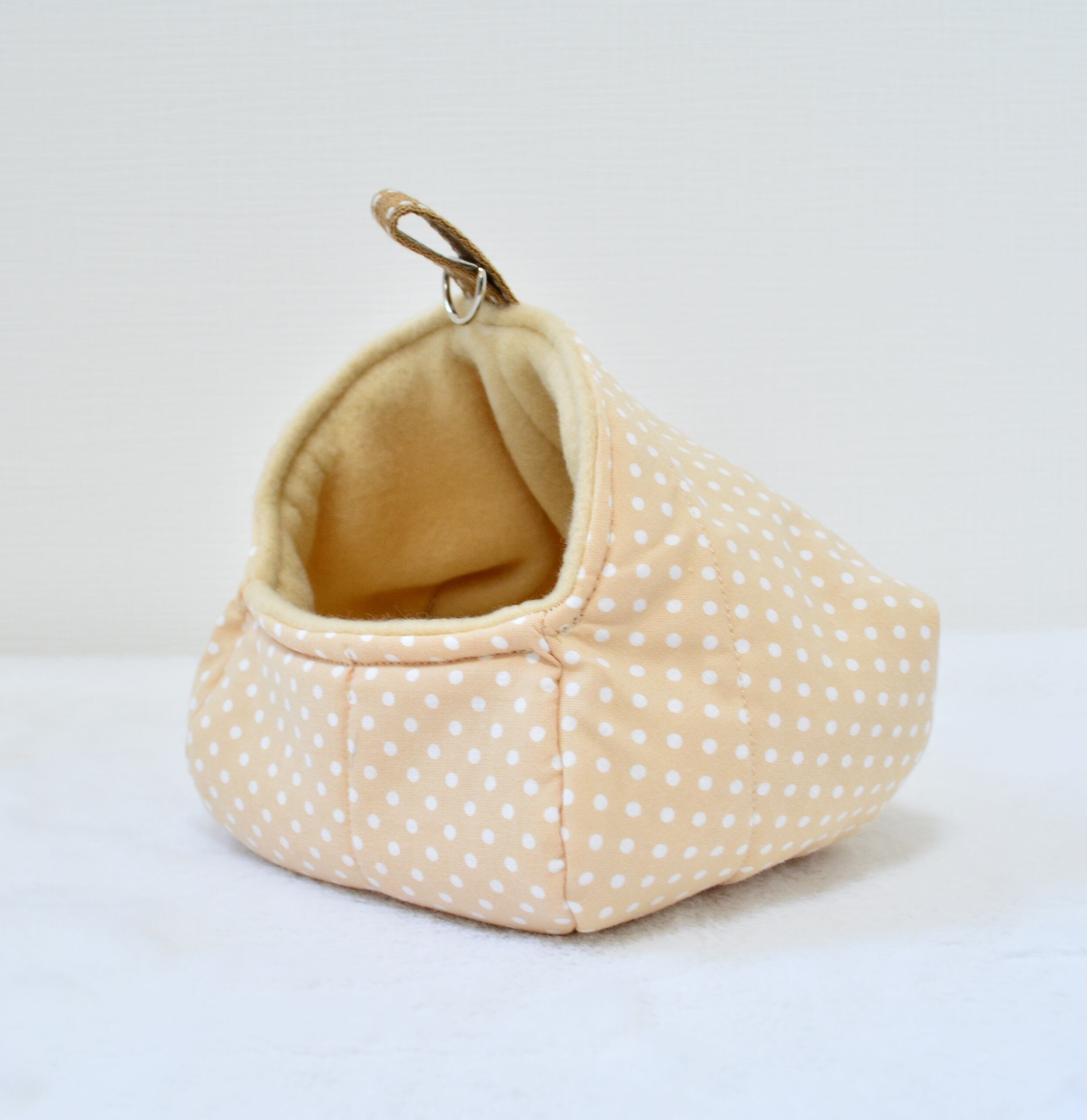 上から除くとモモンガちゃんが寝ている可愛い姿も見えます♡ モモンガタイムのコミュニケーションにも頭や体をなでなでしやすい形です!床に置いてもぶら下げてもケージ内がお洒落に可愛くなりますよ(^^)