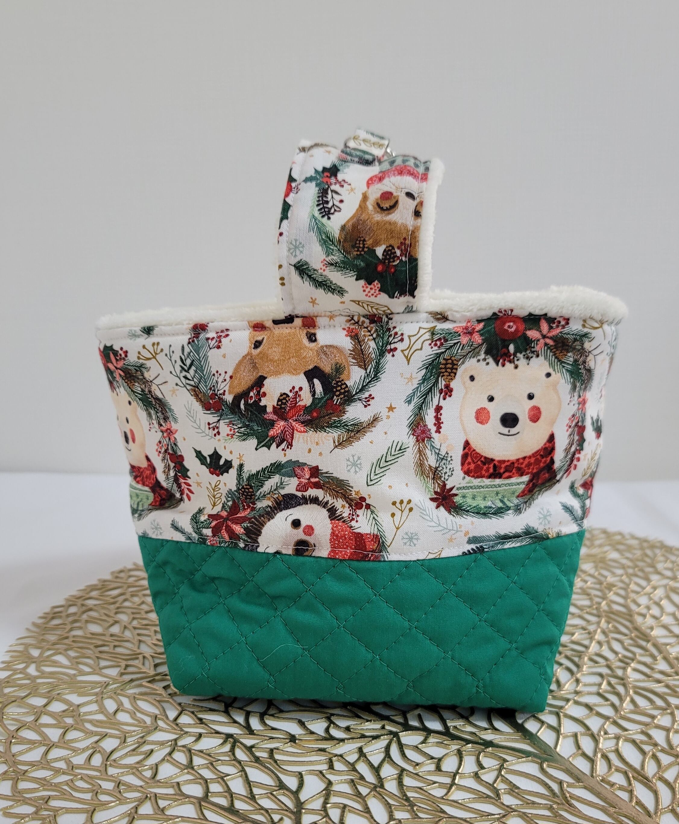 モモンガちゃんが4匹ほど入るマチたっぷりのファミリーサイズ、とってもお洒落なかばん型ポーチです。